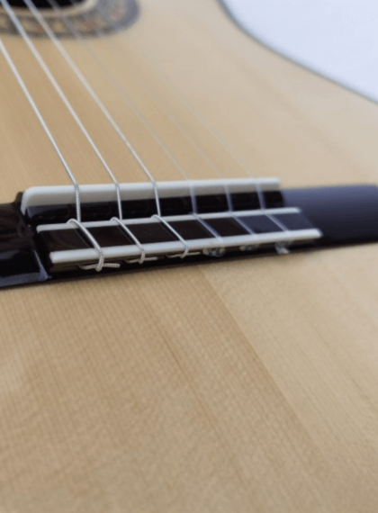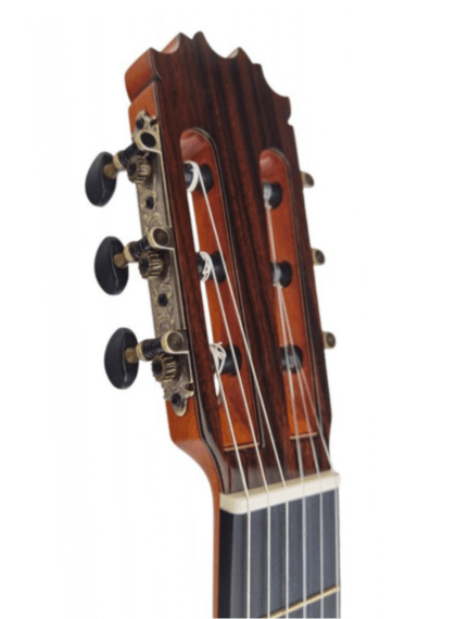 - Gracias a su tapa maciza de abeto, esta guitarra ofrece un equilibrio perfecto entre brillo, profundidad y proyección sonora, ideal para el toque flamenco.