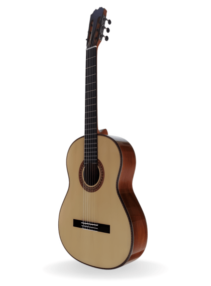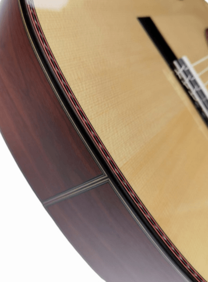 Sus maderas tienen mucha personalidad y estilo, sobre todo el pauferro que incorpora en aros y fondo. Por otro lado, su tapa armónica maciza de abeto remata un repertorio de materiales de mucha calidad.
