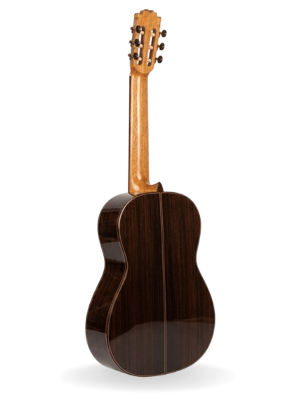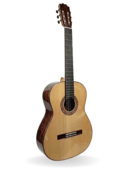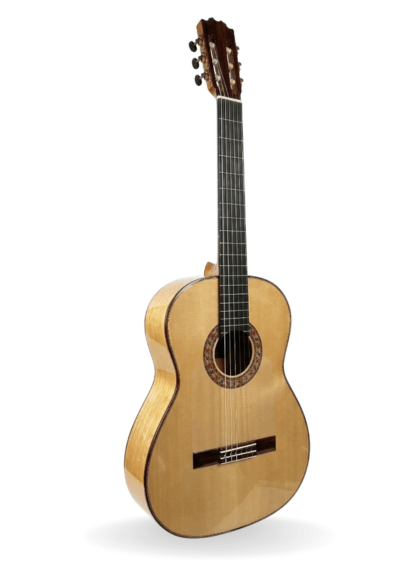 Esta guitarra profesional presenta una artesanía y gusto exquisito. Sus acabados armonizan entre sí de manera sublime gracias a la maestría de un luthier que no ha escatimado ni en conocimiento ni en materiales.