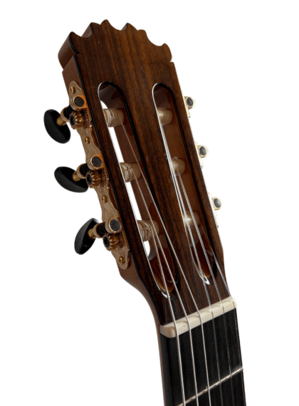 Si prestamos atención a su estética y construcción artesana, observamos que cada rincón del instrumento destaca por su delicadeza, su brillo propio y una calidez visual que transmite elegancia sin necesidad de alardes. Además, al tenerla en la manos, se nota inmediatamente su ligereza y como responde con precisión a la ejecución del músico.