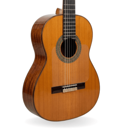 Esta guitarra flamenca posee una caja ligeramente más ancha que otros modelos de esta popular firma. Un instrumento que respira con más amplitud, resuena con más profundidad y proyecta con una generosidad que deja claro desde el primer acorde que estamos ante algo verdaderamente especial.