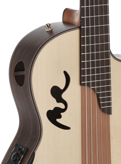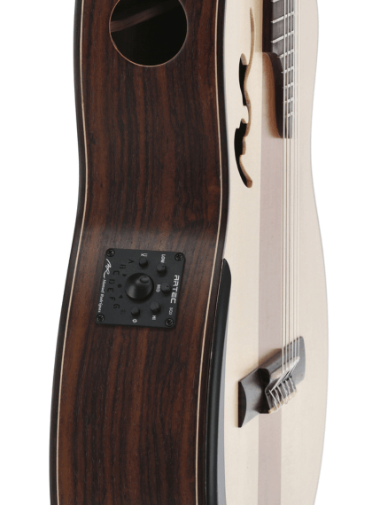 - Gracias al portal de sonido lateral, esta guitarra electroacústica acerca cada nota al intérprete, envolviéndolo en una experiencia más íntima, clara y natural al tocar.