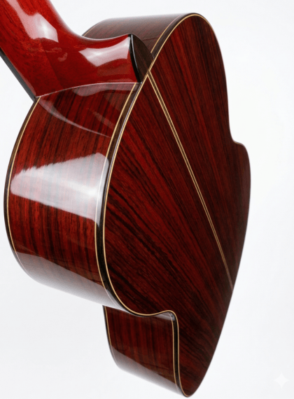 Maderas que han sido elegidas por su capacidad de resonancia y aporte al timbre del instrumento. Su tapa es de pino abeto macizo y los aros/fondo de palosanto laminado 'selección'.