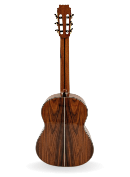Para su fabricación, se han empleado maderas exóticas como el Pauferro, pero también se han incorporado lujosos acabados que hacen de esta guitarra una auténtica joya artesana. El minucioso estudio llevado a cabo en su diseño y posterior construcción, hacen de ella una de las mejores guitarras flamencas en relación calidad-precio.