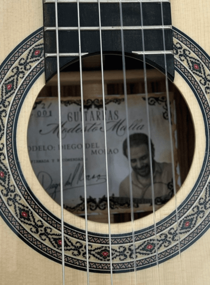 Exclusividad, sonido flamenco y comodidad perfectamente medida se reúnen en la Guitarra Modesto Malla Diego del Morao. Este modelo de pauferro de serie limitada (400 unidades), es un instrumento que ha enamorado al mismísimo hijo de Moraíto Chico, y firmada de su puño y letra como garantía de la calidad que tiene.