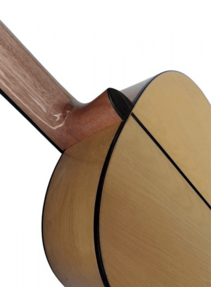 Ofrece una resonancia profunda y rica. Los bajos son poderosos y los agudos cristalinos, entregando un tono flamenco con gran cuerpo que deja muy buen sabor de boca. A pesar de ser una guitarra de iniciación, su sonido es de una calidad muy superior, lo que la hace una opción valiosa para los músicos que buscan una guitarra que “responda”.